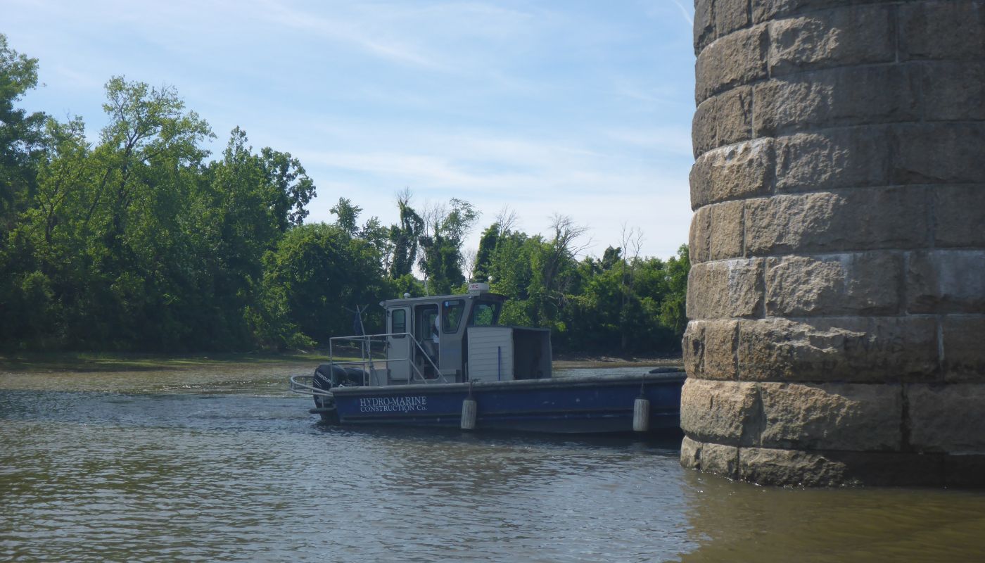 The scope included underwater inspections, channel bathymetry, and side scan sonar imaging at the Rip Van Winkle and Poughkeepsie Railroad Bridges to assess substructure repairs and scour countermeasures. Hydrographic survey data was used to identify and assess scour activity around piers. All work complied with the new FHWA bridge element rating system, and results were uploaded to NYSDOT’s BDIS with updated substructure ratings.